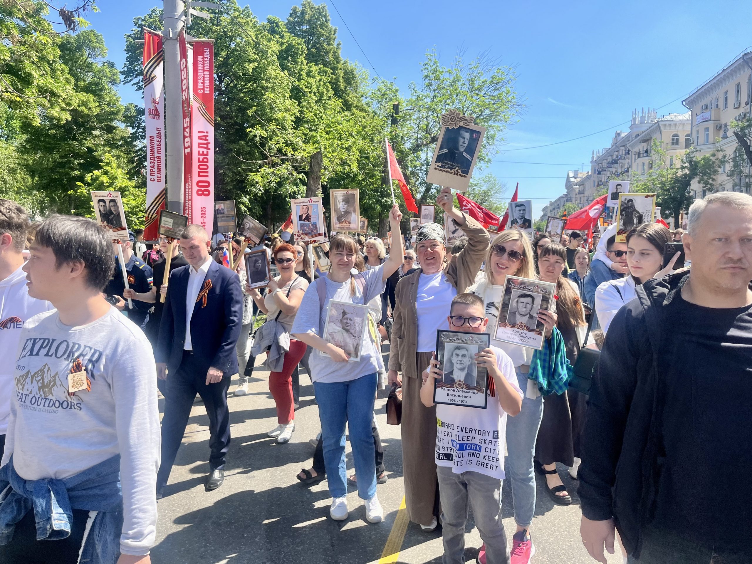 Сразу после этого прошли колонны «Бессмертного полка». Стоит отметить, что Астраханская область – единственный регион в Южном федеральном округе, где шествие состоялось в очном формате. Среди 60 тысяч участников шествовали представители Управления Росреестра и филиала ППК «Роскадастр» по Астраханской области во главе с руководителем Управления Олегом Козьменко и заместителем руководителя Дмитрием Никулиным. Наши коллеги с гордостью несли портреты своих родственников – ветеранов Великой Отечественной войны, делились воспоминаниями, пели песни и поздравляли друг друга с праздником.